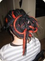 De vlechtjes kunnen ongeveer 2,5 maand blijven zitten. Als je nog geen genoeg van je vlechtjes hebt, dan kan ik ze voor je eruit halen, je haar wassen en doorkammen en de vlechtjes weer opnieuw voor je in zetten. Laat je ze langer dan 3 maanden zitten, dan wordt de uitgroei te groot en krijgt je eigen haar dreadvorming..